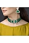 Featuring a gold finish necklace studded with green stones, set in brass. It is paired with a matching pair of earrings. Ideal for festive occasions, weddings, or elevating your elegant evening look.