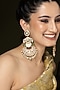 Gold Finish Green Stone & Pearl Drop Chandbali Earrings