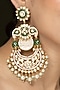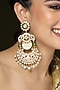Featuring a pair gold finish chandbali earrings studded with green stones and pearl drops, set in brass. Add a touch of sparkle to your ensemble, perfect for festive occasions, weddings or sangeet ceremony.