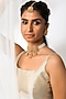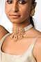 Featuring a gold finish heirloom choker necklace, set in brass. It is paired with a matching pair of earrings. Ideal for festive occasions, weddings, or elevating your elegant evening look.