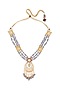 Featuring a gold finish necklace studded with agate beads, shell pearls, navratna stones, and hydro polkis, set in brass.