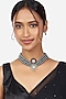 Featuring a gold finish beaded choker necklace studded with hydro stones and hydro kundan polki, set in brass. It is paired with a matching pair of earrings.