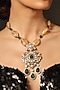 Gold Finish Kundan Polki & Beaded Pendant Necklace