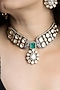 Featuring a gold finish choker necklace studded with kundan polki, set in brass. It is paired with a matching pair of earrings. Ideal for festive occasions, weddings, or elevating your elegant evening look.