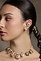 Featuring a pair of gold finish earcuffs studded with kundan polki, set in brass. These earrings radiate timeless elegance, perfect for wedding celebrations, festive soirees, cultural gatherings or evening events, adding a regal charm to every look.