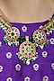Featuring a gold finish handcrafted floral choker necklace studded with kundan polki and emerald green stones, set in brass. It is paired with a matching pair of earrings. This necklace set radiates timeless elegance, perfect for wedding celebrations, festive soirees, cultural gatherings or evening events, adding a regal charm to every look.