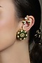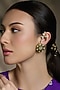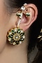 Featuring a pair of gold finish earrings studded with kundan polki and green stones, set in brass. These earrings radiate timeless elegance, perfect for wedding celebrations, festive soirees, cultural gatherings or evening events, adding a regal charm to every look.