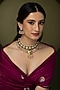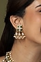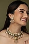 Featuring a gold finish necklace studded with pearls, kundan polki and green stones, set in brass. It is paired with a matching pair of earrings. Add a touch of sparkle to your ensemble, perfect for festive occasions, weddings or sangeet ceremony.