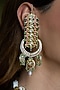 Featuring a pair of gold finish meenakari earcuffs studded with kundan polki, set in brass. These earrings radiate timeless elegance, perfect for wedding celebrations, festive soirees, cultural gatherings or evening events, adding a regal charm to every look.