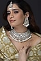 Featuring a gold finish necklace studded with kundan polki, set in brass. It is paired with a matching pair of earrings. Ideal for festive occasions, weddings, or elevating your elegant evening look.