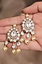 Gold Finish Kundan Polki & Pearl Drop Dangler Earrings