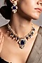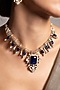 Featuring a gold finish navy enameled necklace studded with kundan polki and pearls, set in brass. It is paired with a matching pair of earrings. Perfect for grand occasions like weddings and traditional festivities.