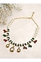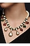 Featuring a gold finish meenakari necklace studded with pearls and polki, including green and red agate, set in brass.
