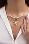 Featuring a gold finish necklace studded with floral motifs, pearls and kundan polki, set in brass. Perfect for grand occasions like weddings and traditional festivities.