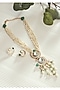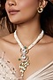 Featuring a gold finish handcrafted pendant necklace studded with kundan polki, pearl drops, beads and motifs, set in brass. It is paired with a matching pair of earrings.