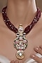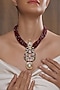 Featuring a gold finish necklace studded with maroon beads, set in brass. Perfect wear for festive celebrations or special occasions.