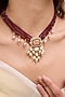 Gold Finish Maroon Beaded & Pearl Pendant Necklace Set