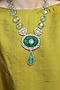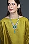 Featuring a gold finish necklace studded with mint green beads and emerald green stone, set in brass. Ideal for festive occasions, weddings, or elevating your elegant evening look.