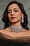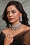 Featuring a gold finish choker necklace studded with multi-colored stones, set in brass. It is paired with a matching pair of earrings. Perfect choice for weddings, parties, and for other Indian festivities.