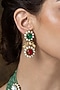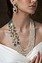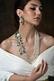 Featuring a gold finish necklace studded with multi-colored stones and pearl strands, set in brass. It is paired with a matching pair of earrings. Add a touch of sparkle to your ensemble, perfect for festive occasions, weddings or sangeet ceremony.