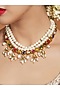 Featuring a gold finish handcrafted necklace studded with shell pearls, hydro kundan polki, and navratna stones, set in brass.