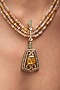 Featuring a gold finish mustard enameled pendant necklace studded with peach beads, set in brass. Perfect for grand occasions like weddings and traditional festivities.