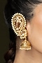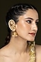 Featuring a pair of gold finish cuff earrings studded with pearls, set in brass. Add a touch of sparkle to your ensemble, perfect for festive occasions, weddings or sangeet ceremony.