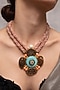 Gold Finish Pearl Enameled Floral Pendant Necklace