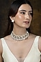 Featuring a gold finish necklace studded with pearls, set in brass. It is paired with a matching pair of earrings. Ideal for festive occasions, weddings, or elevating your elegant evening look.