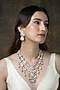 Featuring a gold finish layered necklace studded with pearl strands, set in brass. It is paired with a matching pair of earrings. Add a touch of sparkle to your ensemble, perfect for festive occasions, weddings or sangeet ceremony.
