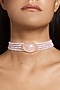 Featuring a gold finish choker necklace studded with pink beads, set in brass. Perfect choice for weddings, parties and for other Indian festivities.