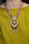 Featuring a gold finish necklace studded with pink stones, set in brass. Ideal for festive occasions, weddings, or elevating your elegant evening look.