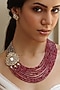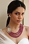 Featuring a gold finish necklace studded with pink stones, set in brass. It is paired with a matching pair of earrings. Perfect for weddings, receptions or festive celebrations.