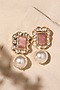 Gold Finish Pink Stone & Pearl Drop Earrings