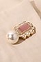 Featuring a pair of gold finish earrings studded with ivory pearl drops and pink stone, set in brass. Perfect wear for festive celebrations or special occasions.