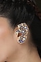 Featuring a pair of gold finish hoop earrings studded with purple stones, set in brass. Add a touch of sparkle to your ensemble, perfect for festive occasions, weddings or sangeet ceremony.