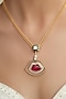 Featuring a gold finish pendant necklace studded with red stone, set in brass. Perfect wear for festive occasions or wedding ceremonies.