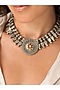 Featuring a gold finish ornate medallion necklace studded with red stones and textured drops, set in brass. Ideal for festive occasions, weddings, or elevating your elegant evening look.