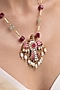 Featuring a gold finish layered necklace studded with ruby stones, set in brass. Perfect for grand occasions like weddings and traditional festivities.