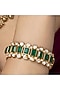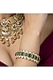 Featuring a gold finish bangle studded with square-cut green stones, set in brass. Ideal for festive occasions, weddings, or elevating your elegant evening look.