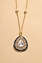 Featuring a gold finish pendant necklace studded with stones, set in brass. Perfect choice for weddings, parties and for other Indian festivities.