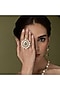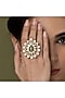 Featuring a gold finish floral ring studded with teardrop gem, uncut polki and crystals, set in brass. Ideal for festive occasions, weddings, or elevating your elegant evening look.