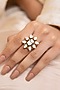 Featuring a gold finish ring studded with teardrop stones, set in brass. Perfect for grand occasions like weddings and traditional festivities.