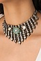 Gold Finish Turquoise & White Stone Ornate Choker Necklace
