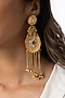 Featuring a pair of 22kt gold plated circular drop earrings studded with gold chain and beads, set in brass. It has a push lock closure. Add a touch of sparkle to your ensemble, perfect for festive occasions, evening soirees or cocktail parties.