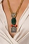 Featuring a 22kt gold plated pendant necklace studded with green stone, set in brass. It has a lobster lock with a link closure. Add a touch of sparkle to your ensemble, perfect for festive occasions, evening soirees or cocktail parties.