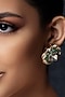 Featuring a pair of 22kt gold plated stud earrings studded with hydro polki and green agate beads, set in brass. It is paired with a matching pair of earrings. Ideal for festive occasions, weddings, or elevating your elegant evening look.
