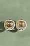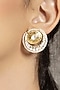 Featuring a pair of 22kt gold plated stud earrings studded with hydro polki, shell pearls and carved motifs, set in brass. Perfect wear for festive celebrations or special occasions.