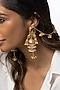 Featuring a pair of 22kt gold plated jhumka earrings with chain detailing, set in brass. It has a push lock closure. Add a touch of sparkle to your ensemble, perfect for festive occasions, evening soirees or cocktail parties.