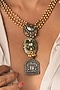 Featuring a 22kt gold plated medallion drop pendant necklace, set in brass. It has a lobster lock with a link closure. Add a touch of sparkle to your ensemble, perfect for festive occasions, evening soirees or cocktail parties.